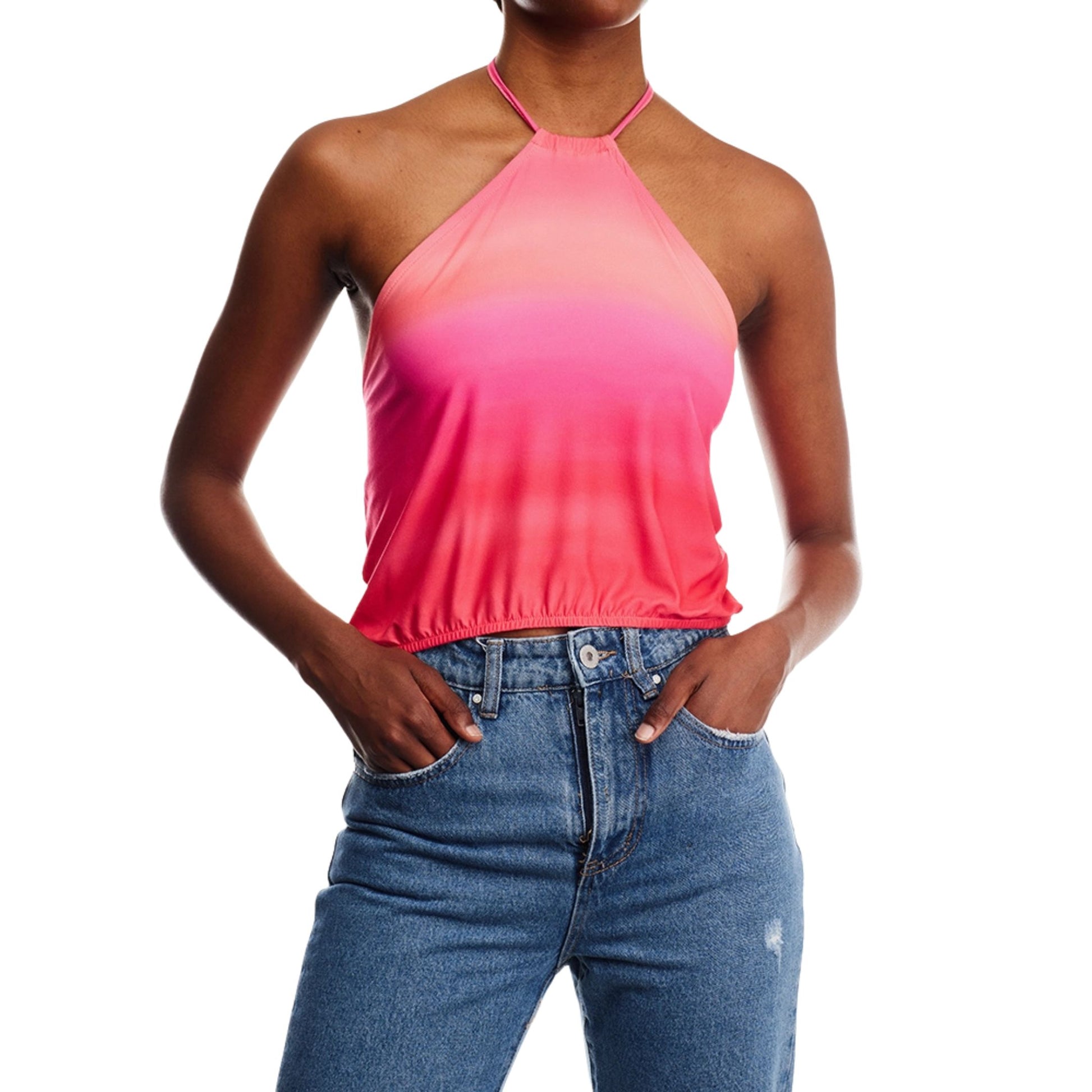 Pink & Red Gradient Ruched Halter Top